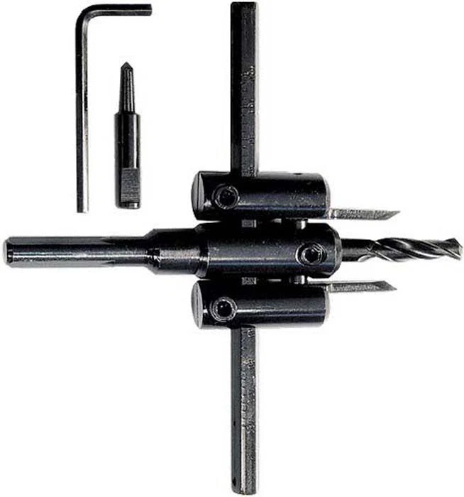 Предназначено для сверления отверстий в дереве, фанере, ДСП, ДВП, ламинате, гипсокартоне. Твердосплавные режущие кромки обеспечивают ровный рез. Глубина сверления материала до 30 мм Быстрая регулировка диаметра реза в диапазоне 30-120 мм Режущие кромки из твердосплавной стали ВК8 Диаметр хвостовика 10 мм В комплект входит шестигранный ключ и точечное направляющее сверло.