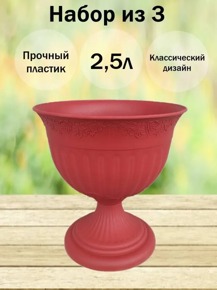 Вазон Венеция представлен объёмом 2,5 литра, что делает его одним из самых удобных в линейке по размерам. Материал изделия лёгкий пластик - полипропилен, делает такой вазон удобным в использовании и хранении. Его легко чистить, переносить с места на место. Пластик надёжно сохраняет влагу, а значит не требуется постоянный долив воды. Вазон защищает корневую систему растения от перепада температур. Терракотовый цвет может стать ярким акцентом в саду, а белый прекрасно смотрится на фоне зелени.