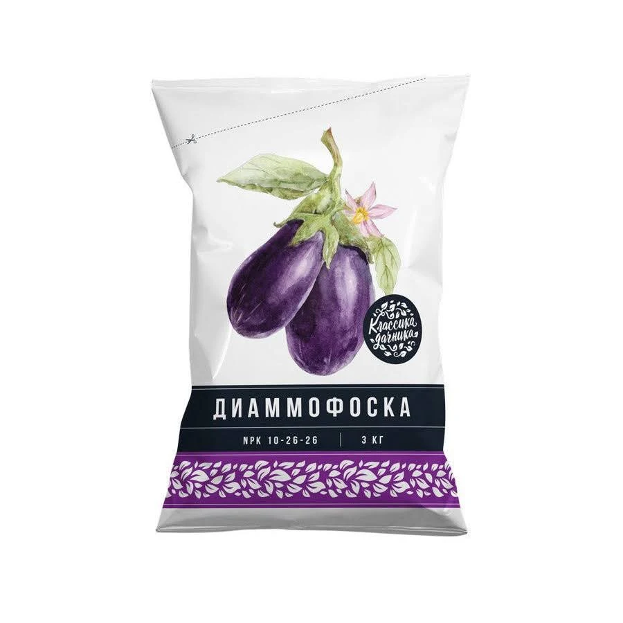Диаммофоска — это комплексное концентрированное удобрение, которое содержит основные элементы, необходимые растениям для роста: азот, фосфор и калий. Удобрение не содержит хлора и нитратов.Характеристики: форма выпуска: сухаясостав: азот (N) 10%, фосфор (Р) 26%, калий (К) 26% назначение: все виды растениймасса: 3 кг. срок годности: в невскрытой упаковке и хранении в сухом месте – не ограничен. Применение: Применяется в качестве основного удобрения, а также для подкормки овощных, зерновых, кормовых, плодово-ягодных и других культур. Используется для основного (под перекопку), местного (в лунку) внесения, а также для подкормок в период вегетации растений. Способы и нормы внесения: Для основного внесения под плодово-ягодные культуры, картофель, овощи и цветы удобрение разбрасывают вручную по поверхности почвы по 35-46 г на 1 м2, после чего перекапывают почву. Для подкормки комнатных цветов используют раствор (1,5 г удобрения на 1 л воды) и поливают цветы через каждые 10-12 дней. При подкормке: под плодовые деревья - 20-25 г на 1 м2под ягодные кустарники — 15-20 г на 1 м2под землянику — 10-15 г на 1 погонный метрпод картофель и овощи — 15-20 г на 1 м2. Действие: Высокая доза фосфора (26%) обеспечивает хорошее развитие и защиту корневой системы, способствует повышению морозоустойчивости растений. Ускоряет рост, улучшает качество плодов, увеличивает срок их хранения. Увеличенное содержание калия в составе удобрения оказывает благотворное влияние на рост растений, способствуя обильному цветению и завязи плодов. Все питательные вещества, том числе фосфор, содержатся в водорастворимой форме и легко усваиваются растениями.