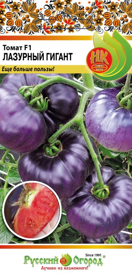 Среднеспелый крупноплодный биф-томат с плодами экзотичного цвета. Растение индетерминантное. Плод округло-плоский, мясистый, средней массой 250 г. Кожура насыщенного сине-фиолетового цвета содержит массу полезных антиоксидантов - антоцианов. Мякоть розовая, сочная, великолепного вкуса, с оптимальным соотношением сахаров и кислот. Отлично подходит для приготовления салатов и бутербродов. Выращивают в теплицах или открытом грунте как коловую культуру. Агротехника. Посев на рассаду, глубина заделки семян 1-2 см. При оптимальной температуре 18...21°С всходы появляются через 7-10 дней. Пикировка в фазе 2-3 настоящих листьев. Размещают на плодородных, легких, нейтральных почвах. Уход заключается в поливах по мере необходимости, прополках, рыхлении, подкормках