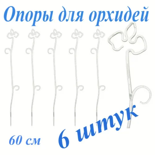 Опора для орхидей изготовленаиз экологически чистого прочного гибкого материала. Держатель для орхидей предназначен для поддержки цветоносов и направления роста стеблей, чтобы избежать перегибов, сломов, роста вниз и опрокидывания горшка. Стебли нужно аккуратно зацепить за крючки на опоре и за верхнюю фигурную часть. Обычно взрослая развитая орхидея выпускает по три стебля-цветоноса. Прозрачный цвет не отвлекает внимания от красоты цветов и гармонирует с оконным стеклом.