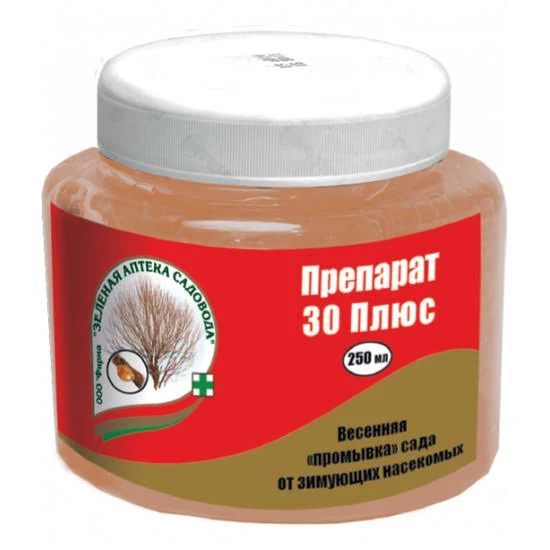 ПРЕПАРАТ 30 ПЛЮС позволяет очистить сад от большинства зимующих насекомых обработка безопасна для человека, домашних животных и окружающей среды Для чего и где применять: для борьбы с зимующими стадиями щитовок, ложнощитовок, клещей, тлей, медяницы, молей, червецов, белокрылки на всех плодовых деревьях - яблоне, груше, айве, сливе, вишне, черешне на ягодных кустарниках - смородине, крыжовнике, малине на винограде на цитрусовых культурах на декоративных кустарниках. Действие и результат: быстрое контактно действие под пленкой минерального масла погибают вредители и отложенные ими яйцазащита в течение до 14 дней. Как применять: опрыскивать растения весной до распускания почек при температуре выше +4°С декоративные культуры – вторая обработка летом в период появления бродяжек щитовок.