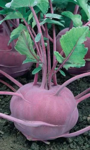 Высокоурожайный, раннеспелый сорт для хранения. Стеблеплод округло-плоский, массой до 2 кг, тёмно-фиолетовой окраски. Мякоть белая, нежная, сочная, сладкая, хрустящая, без горечи. Вкусовые качества отличные.На рассаду семена высевают в конце марта. В открытый грунт рассаду