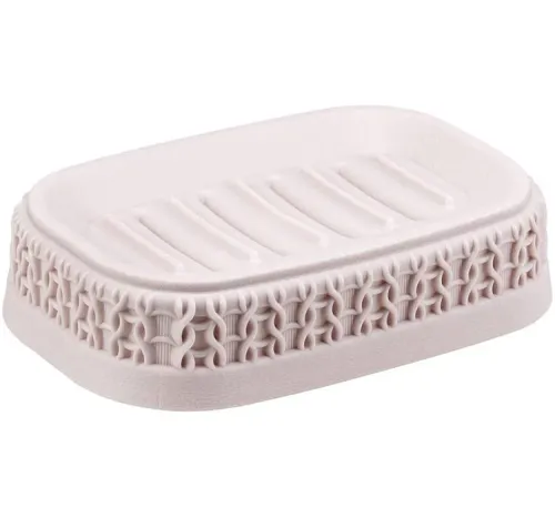 Мыльница оптимального размера, изготовлена очень аккуратно из прочного, лёгкого, безопасного и влагоустойчивого материала. Мыльницу можно использовать с двух сторон. В конструкции предусмотрены желобки, чтобы оградить мыло от лишней влаги. Необычный дизайн под фактуру вязаного полотна исполненный в пастельных приглушённых оттенках выглядит очень современно, при этом даёт ощущение уюта, теплоты, комфорта и чистоты. Отлично комбинируется с другими товарами из коллекции ""Вязание узор"": дозатором для жидкого мыла, набором для туалета, корзинками, коробками для хранения, салфетницей и т.д. Также можно использовать и на кухне, например, как подставку для губки для мытья посуды. Хороший выбор по соотношению цена-качество-функционал-дизайн."