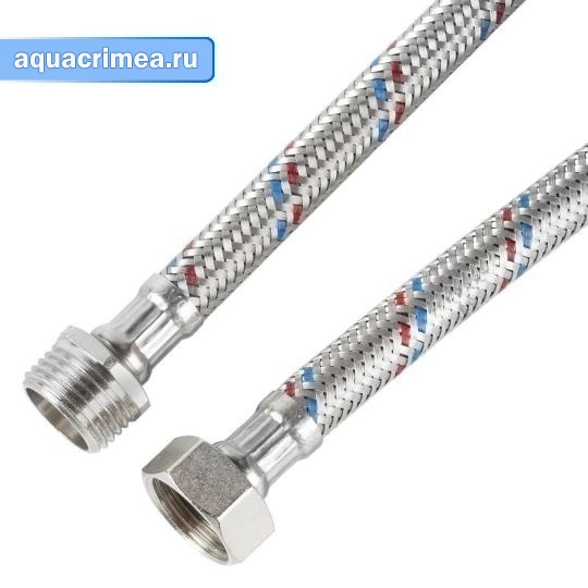 Предназначена для монтажа сантехнической арматуры и приборов сантехнического назначения, подводки воды к приборам бытового назначения. Не предназначена для применения в постоянном проточном режиме, вместо трубопроводов. Состав: резиновый шланг (EPDM) в оплетке из нержавеющей стали AISI 202, гайки и штуцер – латунь.