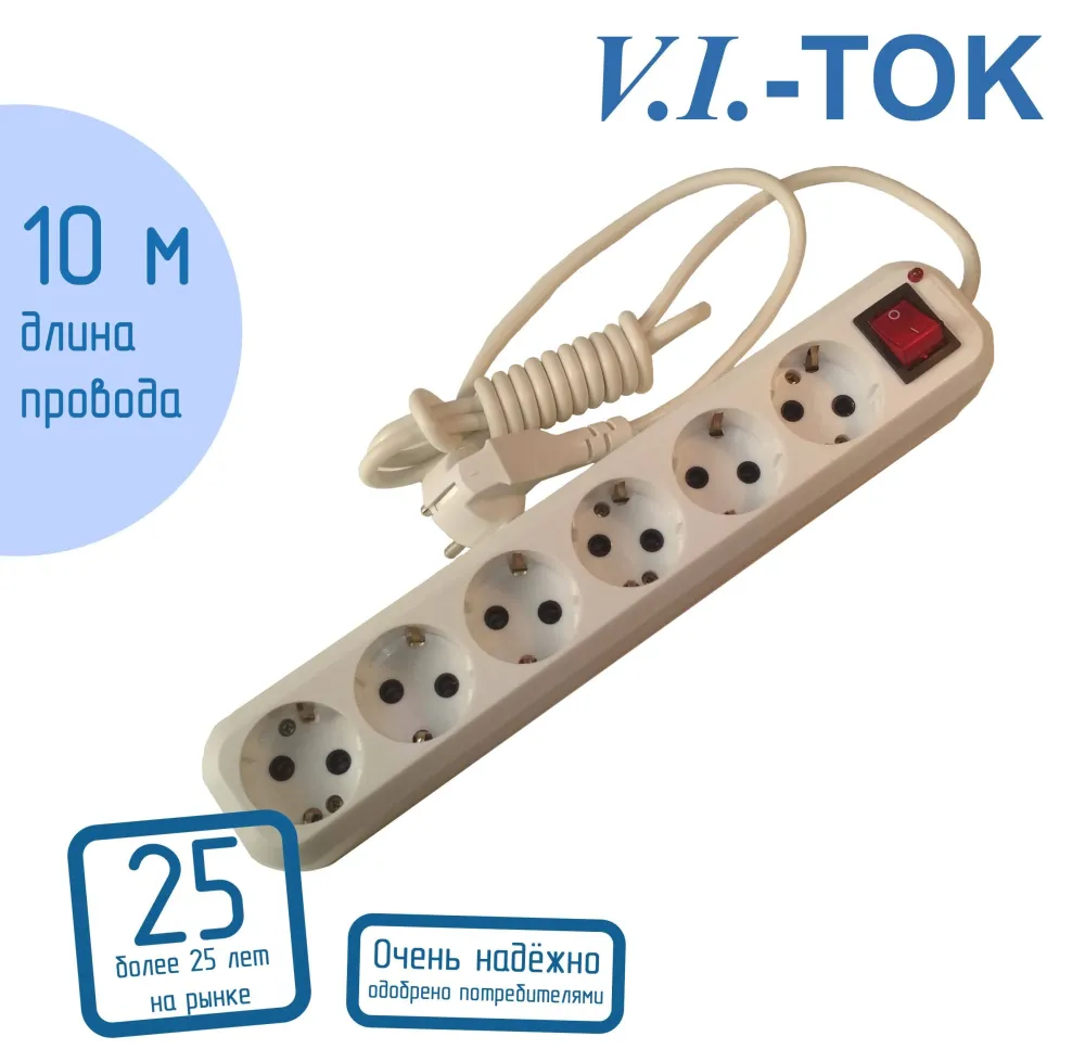 Особенности: надежно защищают от импульсных скачков напряжения в сетирассчитаны на подключение к сети с номинальным напряжением 250B, 50 Гцсуммарная мощность нагрузки составляет 3,6 кВтдопускается подключение 6 единиц оборудования малой мощности автоматический предохранитель встроенный в выключатель корпус изготовлен из ударопрочного AБС пластика вставки изготовлены из негорючего пластика тумблер питания с коммутацией двух проводников и световой индикациейгарантия 3 года. Это модель эконом класса для подключения офисной и бытовой техники, 6 единиц оборудования – компьютер, ноутбук, принтер, ламинатор, сканер, телевизоры, роутеры, зарядные устройства и т.д. Характеристики: модель – СФУ6-Е марка - V.I.-TOKтип провода - ПВС 3х1,0длина провода - 10 м6 розеток с заземлением с выключателемноминальный ток - 16А цвeт - белый.