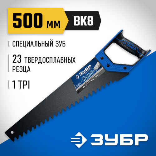 Ножовка по пенобетону (пила) ЗУБР 15157-50, предназначена для ручной распилки блоков из пенобетона. Специальный зуб с твердосплавными напайками увеличивает скорость выполнения работ и обеспечивает длительный срок службы. Двухкомпонентная рукоятка эргономичной формы из ударопрочной пластмассы и мягкого полимера снижает утомляемость при работе и обеспечивает комфортное пиление. Надежный и качественный инструмент, незаменимый помощник при распилочных работах.
